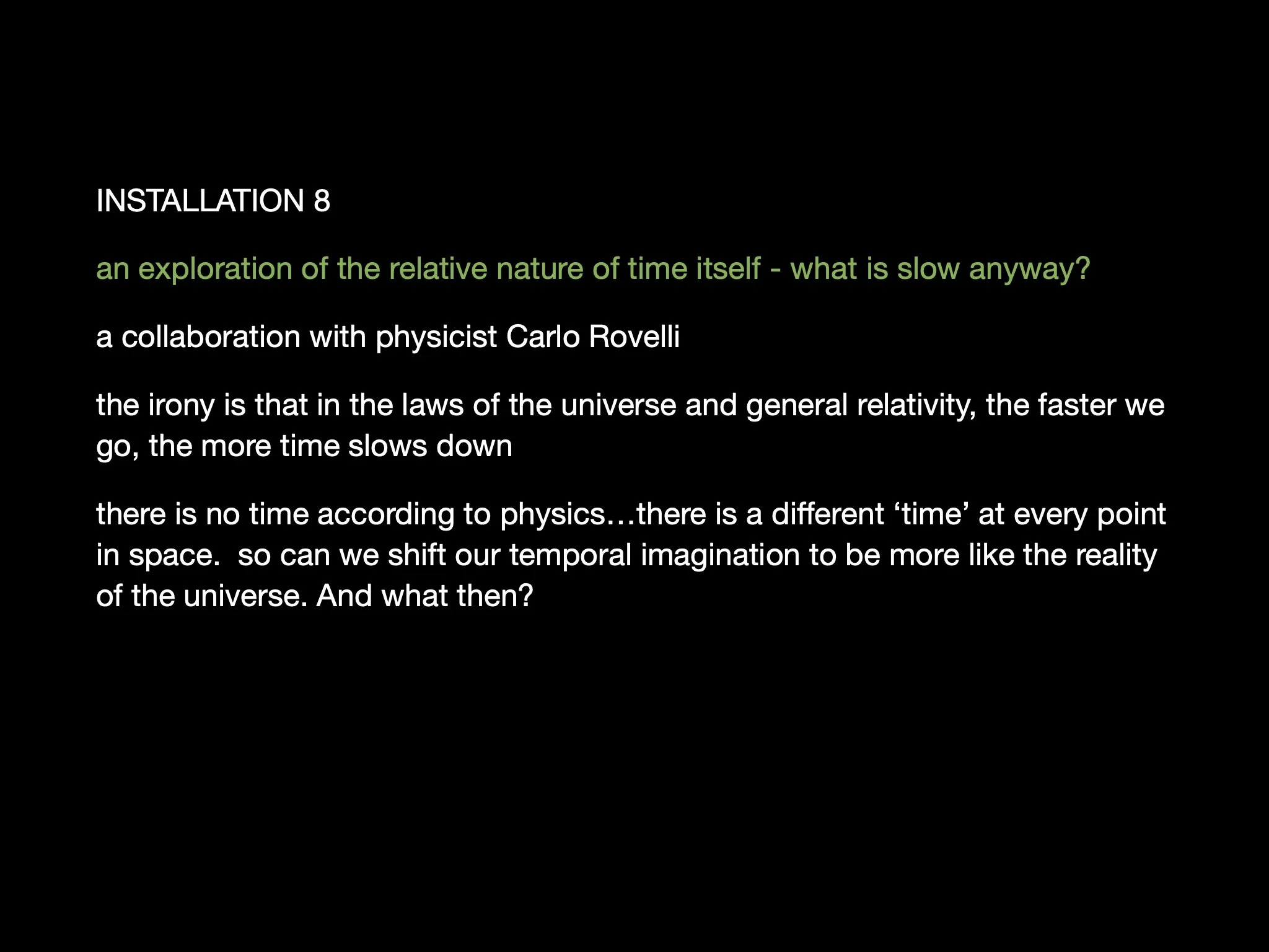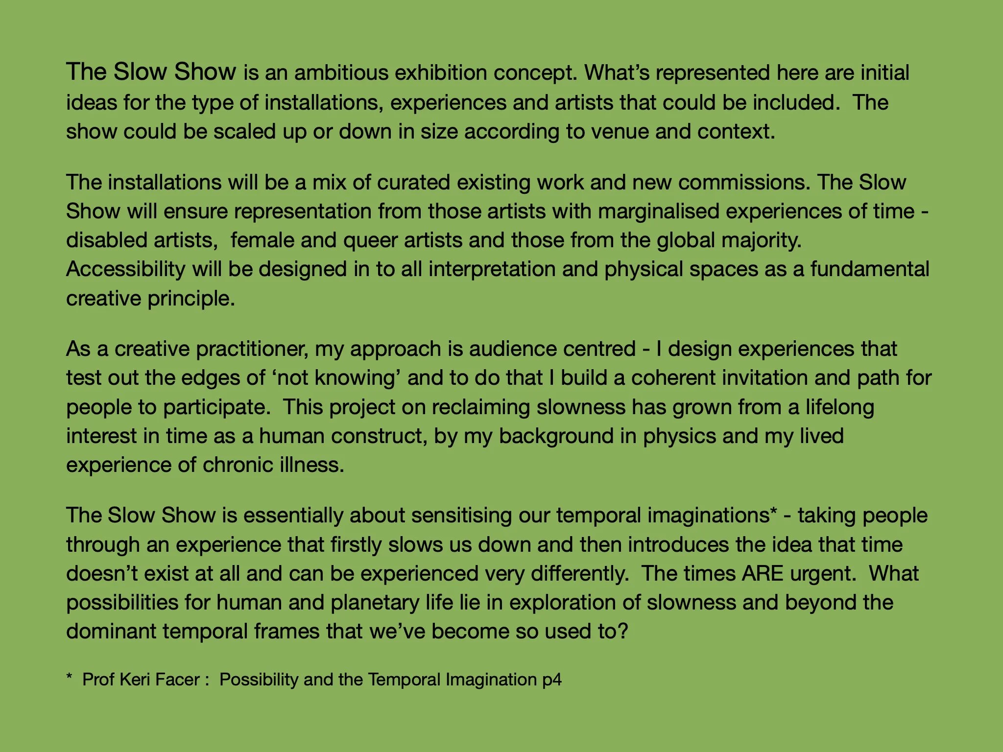 The Slow Show - an exhibition idea in development